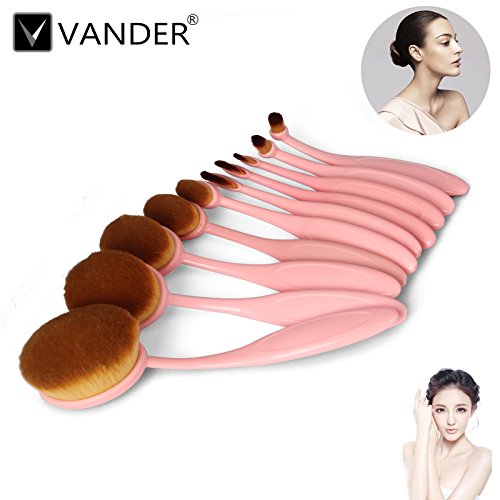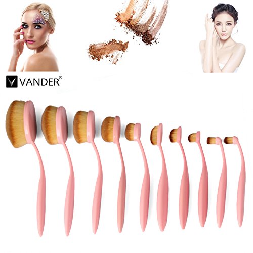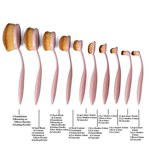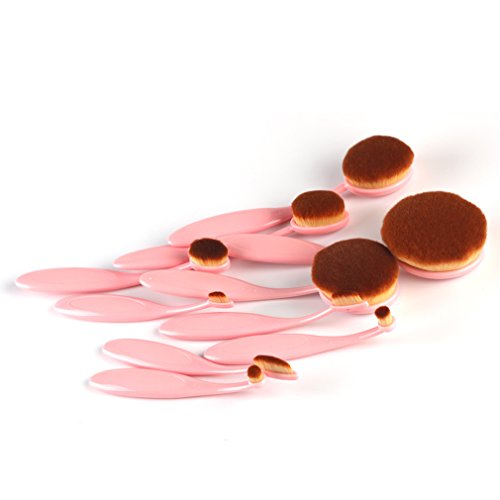 10pcs Pink Oval Toothbrush Makeup Brush Sets BB Cream Contour Powder Concealer Foundation Eyeliner Puff Brushes Cosmetics Tool