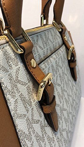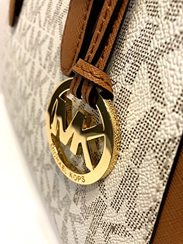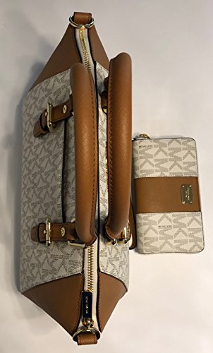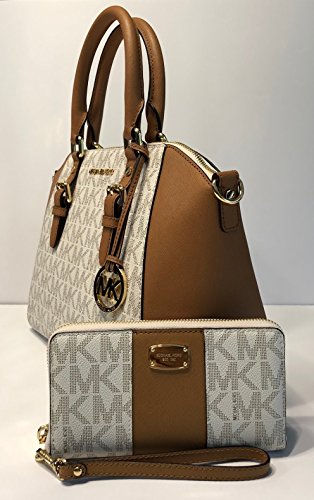 MICHAEL Michael Kors Ciara Large TZ Satchel bundled with Michael Kors Jet Set Travel Large Phone Wallet Wristlet (Signature MK Vanilla Acorn/Center Stripe)