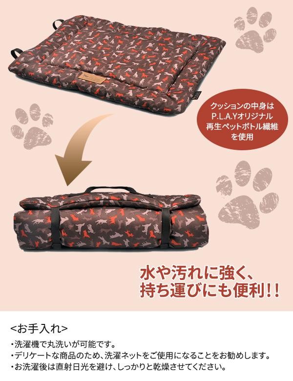 | くるりと丸めてコンパクトに持ち運べるアウトドアチルパッドは、P.L.A.Yのベッド作りに活かされてきた技術と品質をそのまま受け継いだハイクオリティーなペット用マットです。外側には水や汚れに強い防水タイプのカバー、内側にはベッドと同じペットボトル再生繊維を使用しており、独特のフカフカ感でワンちゃんネコちゃんの体を受け止めます。また、お洗濯が可能なのでいつでも清潔に気持ちよくお使いいただけます。 |