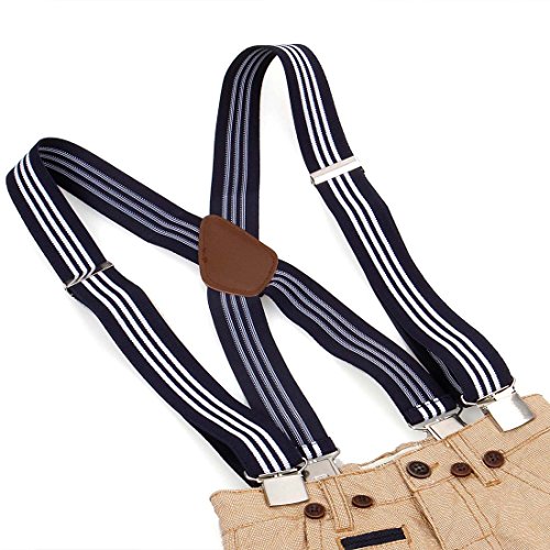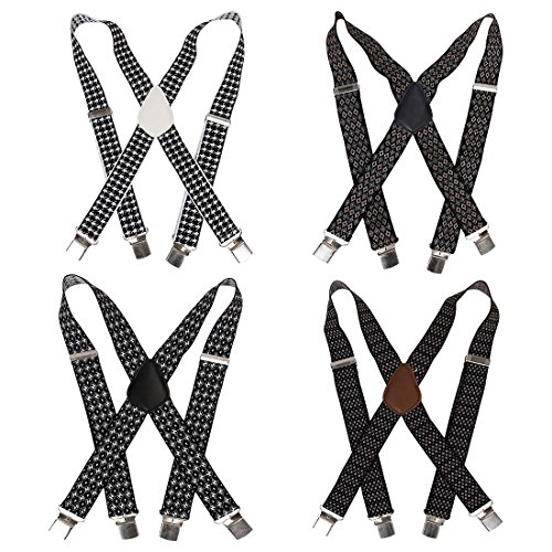 Suspenders are back in style and you, or someone you know, can rock this truly unique fashion by making your own statement with one of our designs! Pick from 5 different sets. Either use it to hold up your bottoms or use it as an added accessory to your look! You'll receive a unisex mixed 4 sets of X-back strapped in plain colored design pattern with adjustable, clip-on suspenders. All straps are made of stretch polyester and are 1.25" wide. Pair it with your favorite trousers or even with your skinny jeans - each design will add a fresh, classy look. *SIZE OF SUSPENDERS*: Adjustable strap measures 24.5" to 38" long, end to end, un-stretched. Clips measure 0.9 in. wide by 1.25 in. tall. *NOTE*: Due to differences between monitor displays, actual color may vary slightly from image. Bundle Monster is a registered trademark of Remi Collections LLC and is exclusively distributed by Bundle Monster. Bundle Monster trademark is protected by Trademark Law.Feature