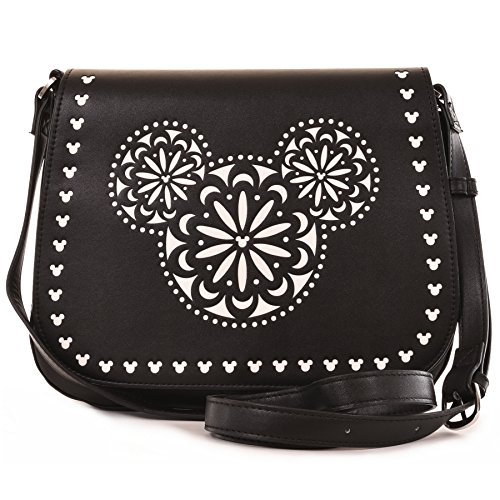 -. Brand : Disney -. Color : Black -. Department : Womens -. EAN : 8934182004339 -. Feature : Duo-tone faux leather bag / Laser cut Mickey icon design overlay / Magnetic flap closure / Open exterior pocket / Interior zippered pocket with faux-leather pull / Two open top pockets, including cell phone pocket / Fabric lined / Adjustable faux-leather crossbody strap with buckle / Silvertone hardware / Embossed Vera Bradley label on back -. Label : Disney -. Manufacturer : Disney -. PackageQuantity : 1 -. ProductGroup : Shoes -. ProductTypeName : HANDBAG -. Publisher : Disney -. Size : One Size -. Studio : Disney -. Title : Disney Mickey Mouse Icon Laser Cut Crossbody Bag by Vera Bradley - Black