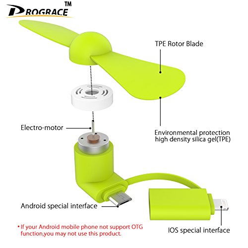 2 in 1 OTG Mini Micro USB and 8 Pin Lightning Port Fan, Mobile Phone Dock Cool Cooler Rotating Fan for Power Bank/ iPhone and Android Smartphone