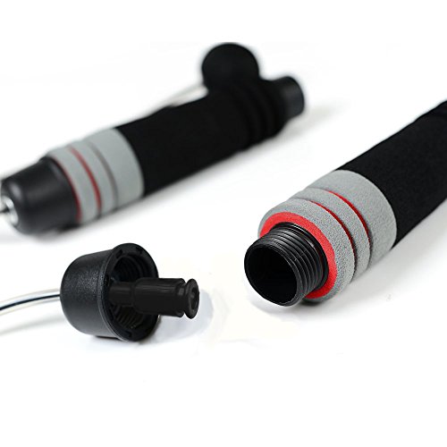 FASTER: The handles which are made of elastic sponge will fit your hands better, industrial-grade smoothed steel tips and ball bearing turn make the rope spin much smoother and faster. ADJUSTABLE: Each handle contains a removable weight, and also the rope can be desired within minutes, it's easy and convenient for anyone to set up a more suitable experience for their own. LESS LIMITED: Because of the ropeless, this jump rope won't kink and fits all height of people, what's more, it's easy to carry and you can do your rope jumping not subject to space constraints. SUIT EVERYONE: This jump rope is more easier to be controlled and suitable for people of all ages and both sexes, no matter beginners or masters. GOOD FOR HEALTH: Rope jumping improves cardiovascular health as it improves the heart beat rate, thus it is beneficial for blood pressure patients. It's also known to help in improving bone density.Rope jumping is one of the best cardio and HIIT (High-Intensity Interval Training) workout. 100% SATISFACTION GUARANTEED: if there is an issue with your product for any reason, we will REFUND you and SEND YOU A NEW ONE.