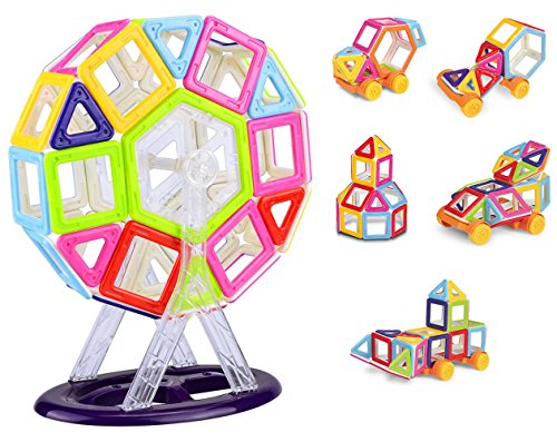 -. Feature : 【Play and Learning】- This building toys set can be combined into many patterns, not limited to ferris model, could help kids learn colors and shapes while playing, cultivate their teamwork ability, practical ability, imagination and creativity. / 【Safe Material】- The magnetic building blocks is made from non-toxic, high quality abs food grade plastic and conform to ce, en71, astm and hr4040. Smooth edge of each tile will never hurt baby's little hands. / 【Magnetic and Easy Clean Pp】- Powerful magnets make playtime more fun, the magnetic tiles connect to each other strongly with firm construction, magnetic effect will not changed after long use; easy to clean them up and storage since magnet sticks together. / 【Total 68 Pieces】- 24 squares, 12 triangles, 1 rectangle, 2 trapezoid, 2 hexagons, 2 cartwheel,17square in panel, 8ferris accessories. 32 x stickers(26 letter cards, 6 animal cards) and an instruction included for your reference. (note: this magnetic building blocks comes with random colors). / 【Best Gift for Kids】- It can be a kid's birthday, children's day, parties gift, or as a P.R.Ize.