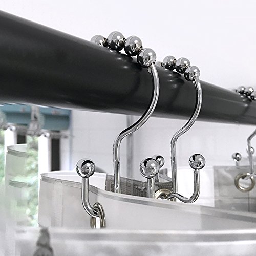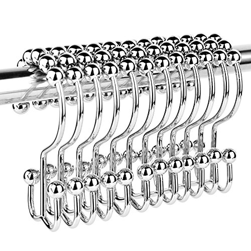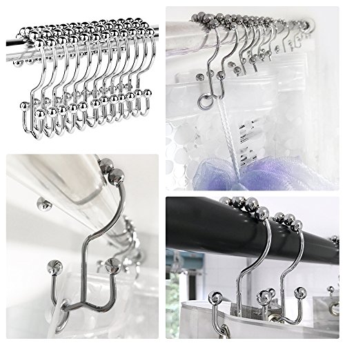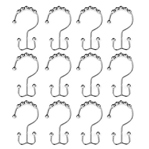 PROMASVE Shower Curtain Rings Double-hook, Stainless Steel, Set of 12 (Chrome)