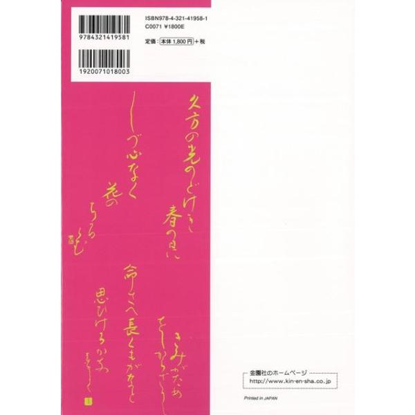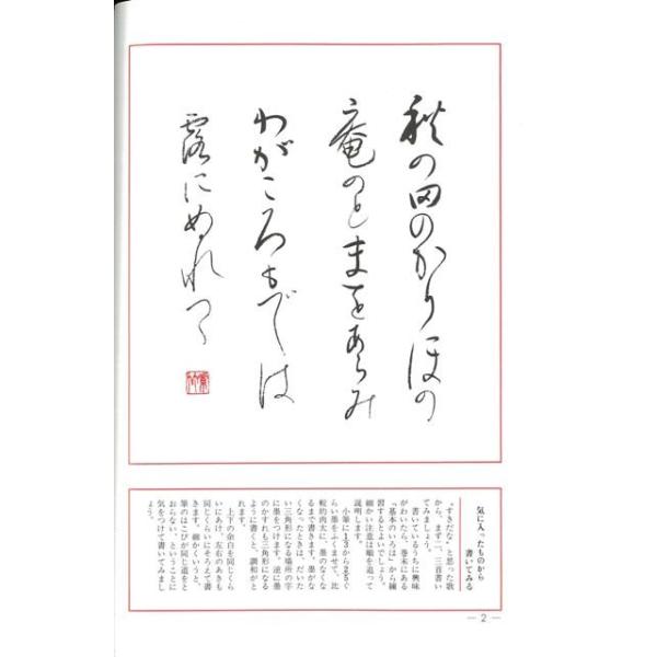 【商品説明】 定価(税込み):1,944円 値引き:10% OFF 歌の意味や語訳、作者についてのわかりやすい解説と書き方指南。かなの基本や連綿など細やかに指導。百人一首を書道で書くことで、より理解は深まり、文字にも心がこもります。 バーゲンブック 新品 特価 格安 諸芸 書道 書画 書道具 書集 歌 |