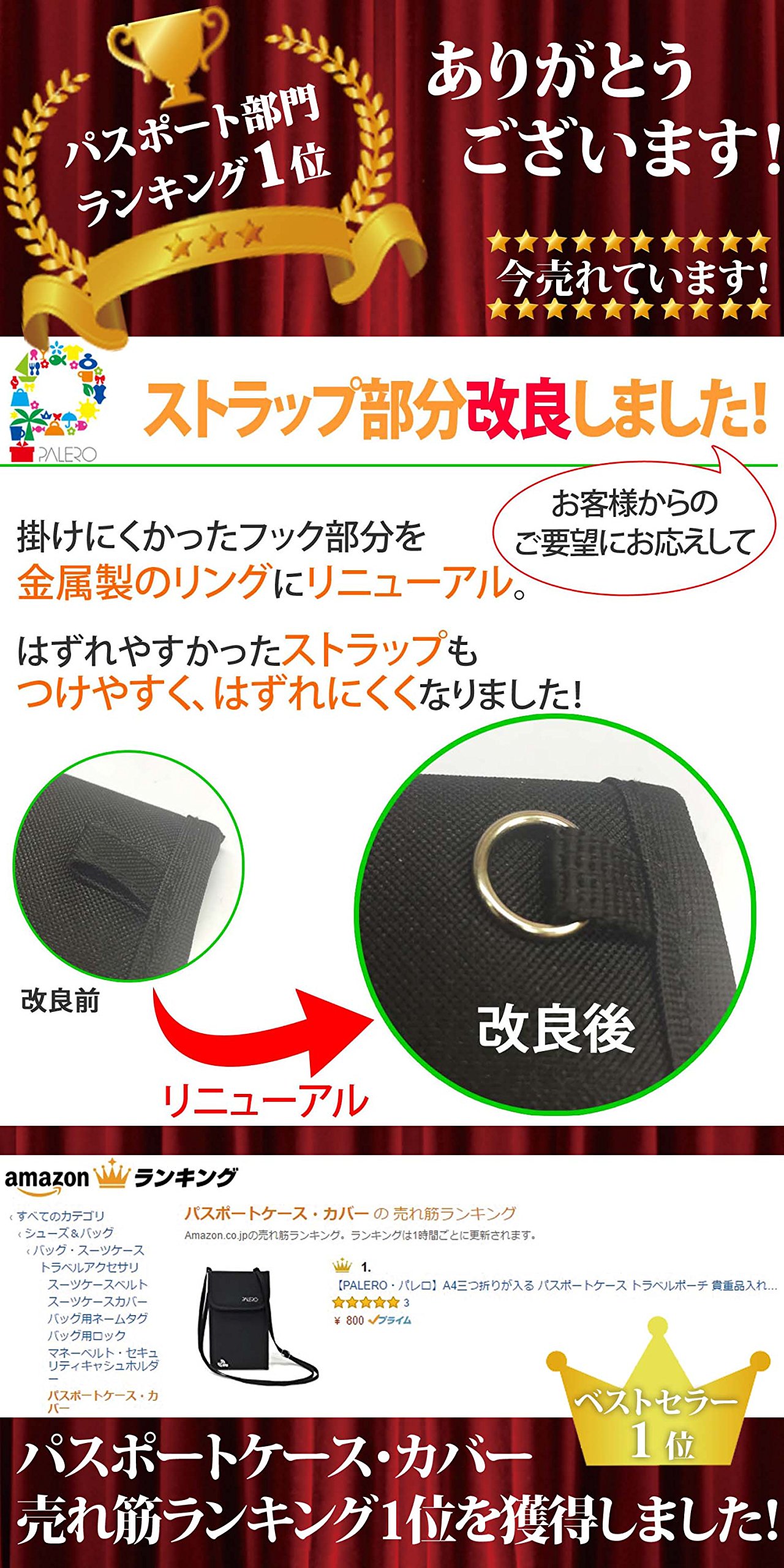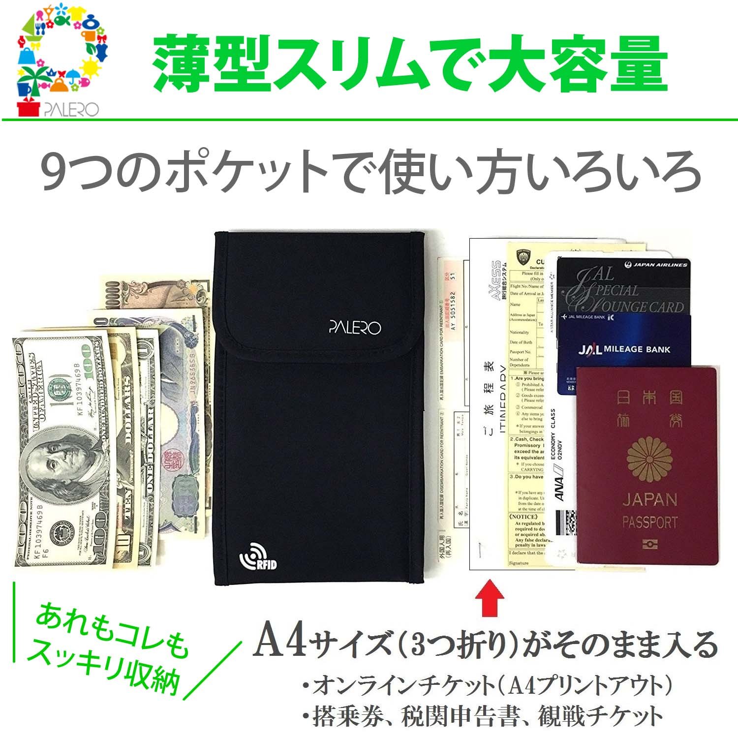 【PALERO · Palero】 A4 Passport case containing triple folding Pouch valuables Light weight water repellent Anti skimming Prevention RFID (black)