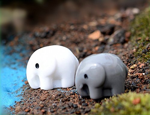 Danmu 2pcs (2 colors) Mini Resin Elephants Fairy Garden Micro Landscape Home Garden Decoration Plant Pots Bonsai Craft Decor