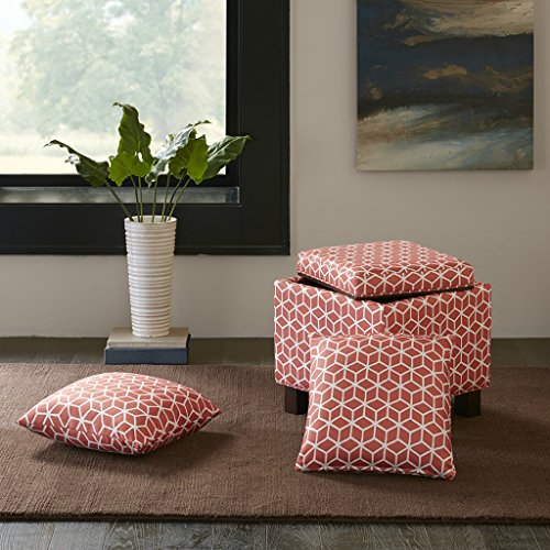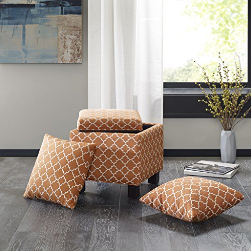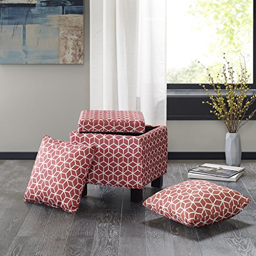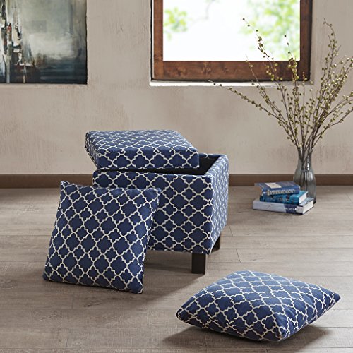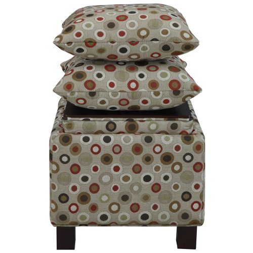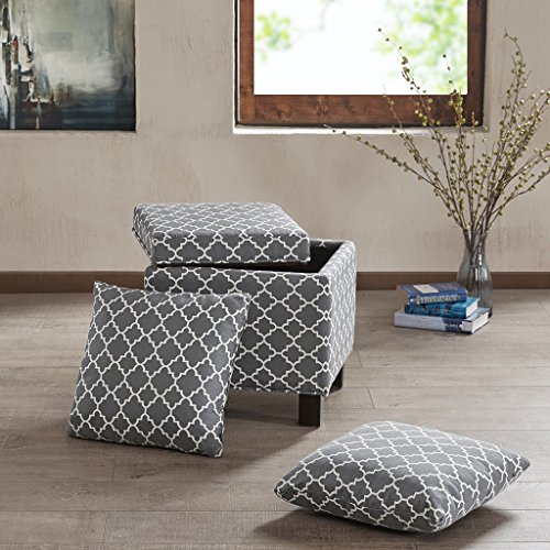 These square storage ottomans with two matching accent pillows bring a room's décor together as an ideal way to add that soothing neutral tone and comfort to your living space. Assembly required.Feature