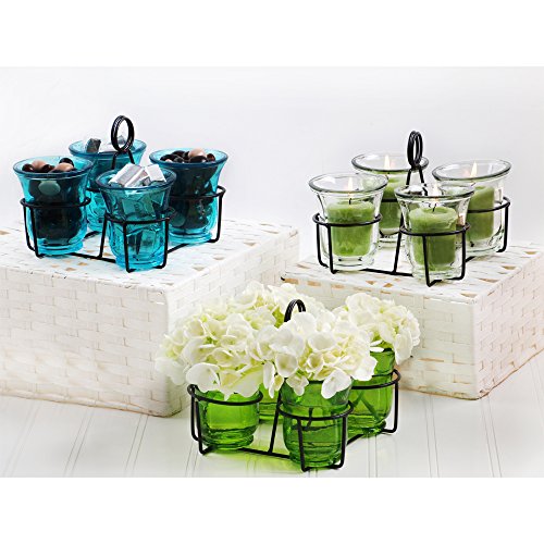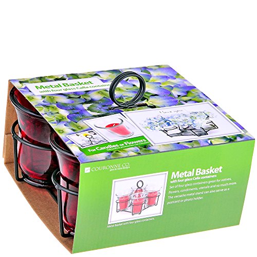 Couronne Company Couronne Co Four Recycled Glass with Mini Metal Basket Containers, Clear