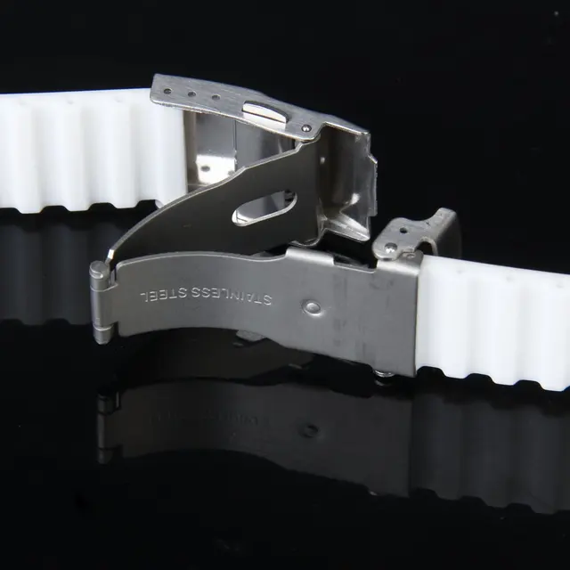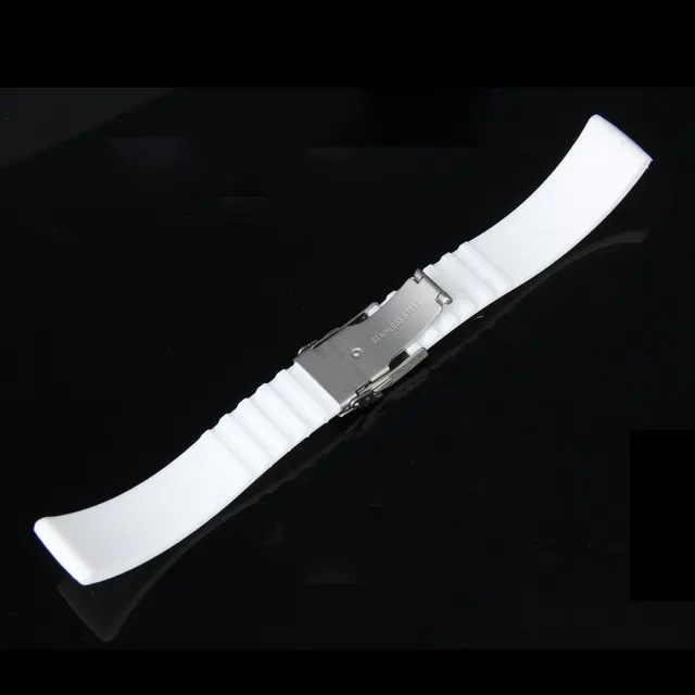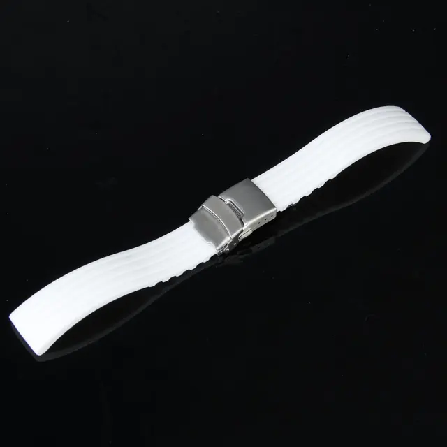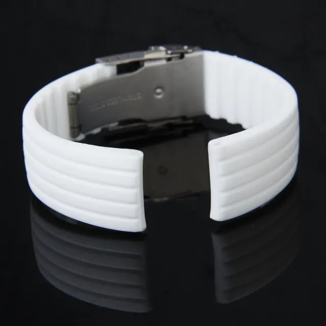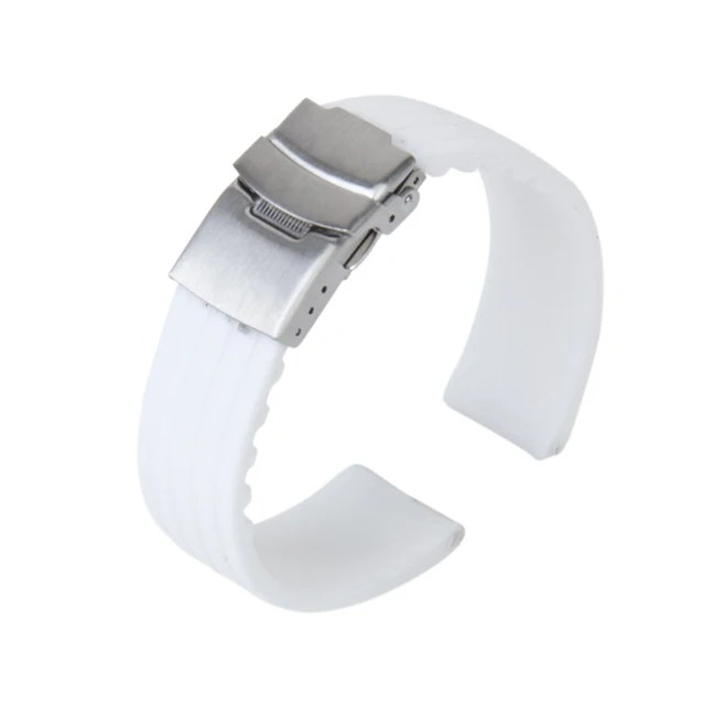 상품 내용 색상 화이트 높은 품질 부드러운 실리콘 소재 스테인레스 스틸 접이식 걸쇠 길이: 약. 7.5 인치 (19 센치메터); 폭: 약. 0.75 인치 (2 센치메터) 맞는 시계 20 미리메터 러그 widthColor 화이트