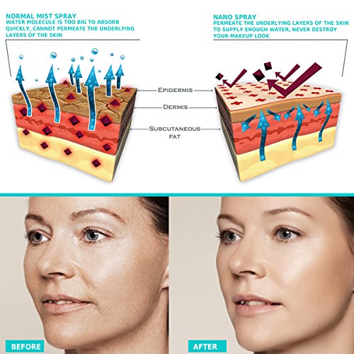 【Nano mister & Blue light Tech】Adopted blue light technology to improve the sprayer quality. Nano mister gives the finest ionic mist spray to moisturizes without damaging the makeup. The refreshing mist can sooth away the mild pain or itching that caused by overexposure from sunshine. Cool mist moistens and soothes tired skin instantly, great to relieve dryness from heated or cooled place.