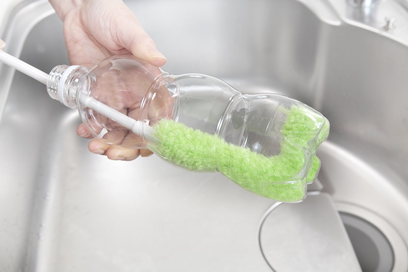 The cleaner fits to the uneven part and the corner of the plastic bottle