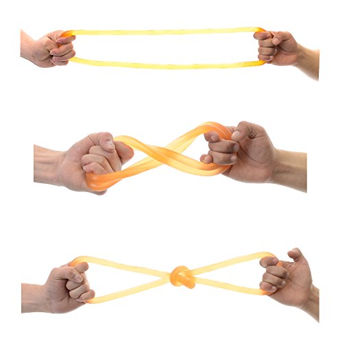 There are so many ways to integrate this fun toy into daily activities; you are limited only by your imagination. Stretch it, pull it, and test your best sailor knots on it! Loop it onto itself to double the challenge, and see how far you can pull it apart. Don't worry, the loop is made of a durable polymer blend designed for the extra stretches and twists, without the drawback of latex allergies.