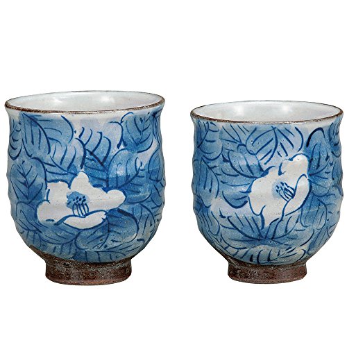 -. Title : Pair Tea Cups Camellia Kutani Yaki Yunomi