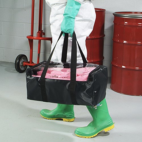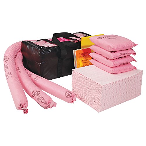 -. Binding : Misc. -. Brand : New Pig Corporation -. Feature : Heavy-duty, black vinyl duffel bag resists wear and tear; pockets let you store additional tools and supplies / Clear plastic top flap lets you easily check contents, so you know you're prepared for a spill or an audit / Pig hazmat socks stop spreading spills; Pig hazmat pads and pillows absorb quickly / Pig hazmat absorbents are specially treated for unsurpassed performance with concentrated corrosives, such as 98 percent sulfuric acid and 30 percent sodium hydroxide / Prepacked bag provides easy access to contents -. Label : New Pig Corporation -. Manufacturer : New Pig Corporation -. Model : KIT389 -. MPN : KIT389 -. NumberOfItems : 1 -. PackageQuantity : 1 -. PartNumber : KIT389 -. ProductGroup : BISS -. ProductTypeName : LAB_SUPPLY -. Publisher : New Pig Corporation -. Studio : New Pig Corporation -. Title : New Pig KIT389 57 Piece HazMat Spill Kit in a Clear-Top Duffel Bag, 8 Gallon Absorbency