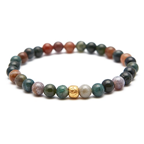 Embark on a journey of self-discovery. Adorn your wrist with this natural stone and lotus bead stretch bracelet, great for layering.