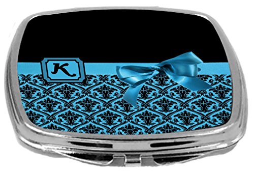 Rikki Knight Letter-K Monogram Damask Bow Design Compact Mirror, Sky Blue, 2 Ounce