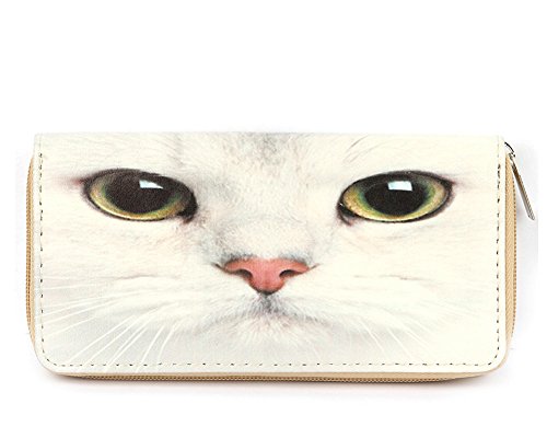 Product DescriptionBAG ACCESSORY CAT FACE VINYL CLUTCH WALLET ZIPPER COIN POCKET CASH POCKET CREDIT CARD POCKET ONE SIZE 8 INCH WIDE 4 INCH TALL0