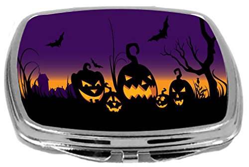 Rikki Knight Compact Mirror, Halloween Lighted Pumpkins On Purple