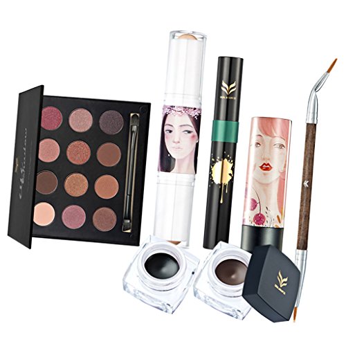 -. Title : MagiDeal Pack of 7pcs Makeup Set 12 Colors Eyeshadow Palette, 2 Shades Eyeliner Cream,Waterproof Mascara ,Shimmer Lipstick ,Highlighter Stick, Angled Eyeliner Brush Cosmetic Kit