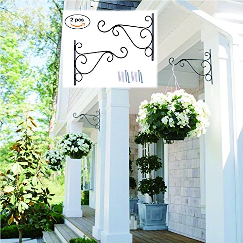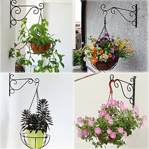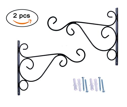 -. Feature : MATERIAL--- Metal plant bracket be made of rust resistant, heavy duty steel construction. Sturdy construction for hanging plant baskets.Bring your heaviest pots and baskets. / PACKAGE INCLUDE--- pack of 2 plant hanging bracket with 4 mounting screws. Approx. dimension: 10inchX x 7.8inch. Color---Black / MULTI-PURPOSE--- You can mount Plant Hanging Brackets on wall, deck, fence, door for indoor or outdoor events in living room, garden, garage or balcony. Simple design with P.R.Imitive swirls and clean finish, complements the hanging ornaments and adds color to the occasions. / Versatile wall mounted hook---Beautify your home or garden by hanging bird feeders, lanterns, planters, flower pots, holiday decorations, string lights, wind chimes, ornaments, candle holders, path lights, and so on! / CLASSIC DESIGN---The hand forged Bracket with speacial design add a vintage flavor to your home or garden.