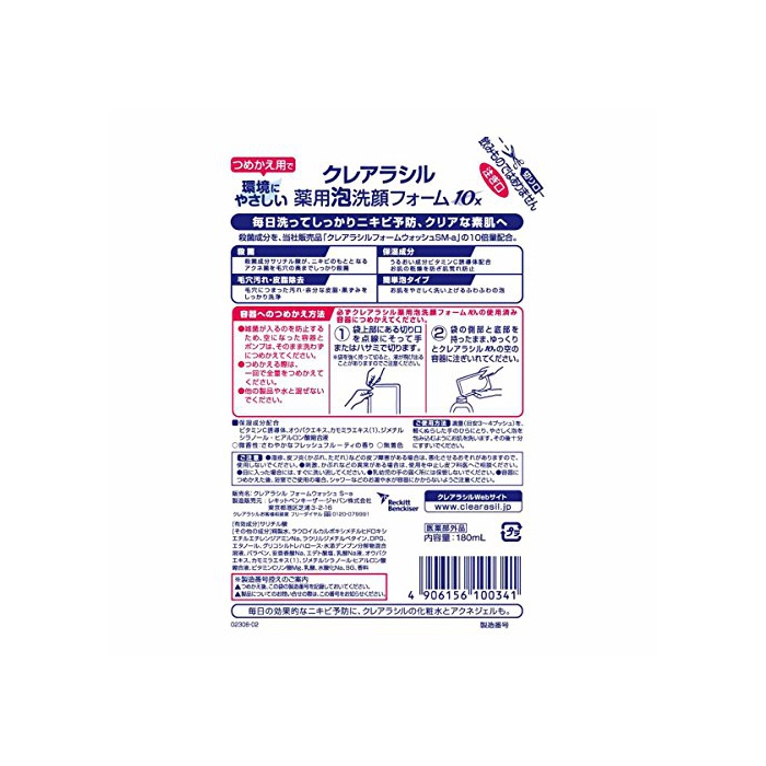 원본상품명: クレアラシル 詰替 ニキビ策 用 泡洗顔フォム10X しっかり殺菌180ml