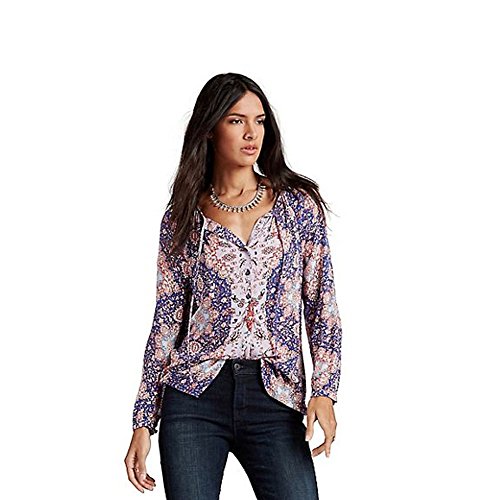 Lucky Brand missy long sleeve multi-colored printed woven top