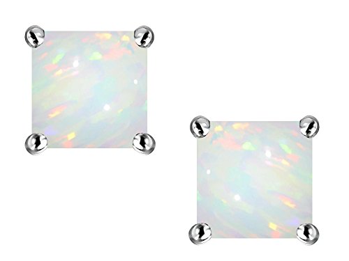 The dazzling Star K Square 7mm Created Opal Earrings, crafted in .925 Sterling Silver . This amazing design is set with 2 stones prong set white iridescent Square Created Opal. This product measures 7.00 mm wide, 7.00 mm long.Warranty. Warranty: - This item is covered by our exclusive Silver Shield Lifetime Warranty. This exclusive lifetime coverage is offered ONLY by Finejewelers so please shop with confidence, our quality is guaranteed for life!Feature