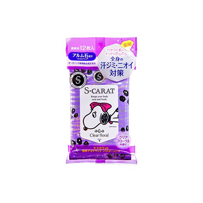 KOSE 에스 캐럿 약용 deodorant 파우더 씨트 (클리어 플로랄) 12매입 (의약부외품)