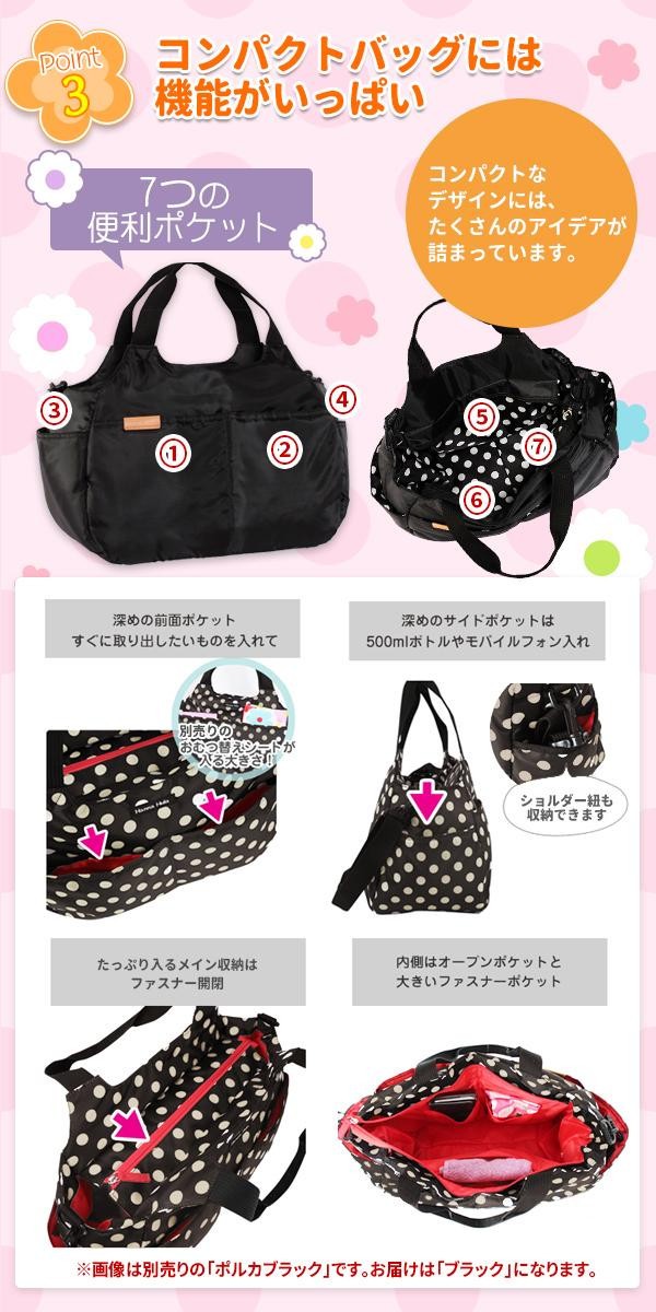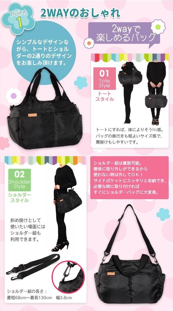 | ドット柄の裏地がかわいい大容量マザーズバッグ |
