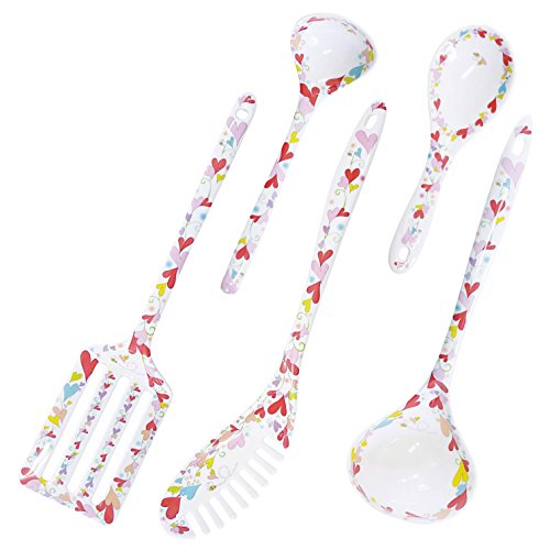 -. Feature : サイズ:四角ターナー/約29.7cm、レードル/約32cm、おたま大/約28cm、おたま小/約21cm、丸型しゃもじ小/約21cm / 総重量:0.235kg / 材質:メラミン / 原産国:タイ / セット内容:四角ターナー・レードル・おたま大・おたま小・丸形しゃもじ小 / 耐熱温度:約120度 / 食洗機・電子レンジ使用不可