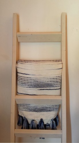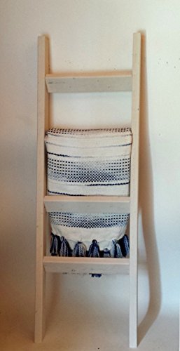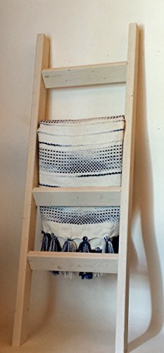 Product Description Store your quilts, blankets, and towels on this beautiful, hand-crafted, wooden quilt ladder. Perfect for bedrooms, bathrooms, living rooms, or even as a housewarming gift! Choose from 24 unique stains (including our brand-new whitewash finish) to fit your home decor perfectly. If you would like to see more items from our shop, please don't forget to visit Ollie's Ideas! You can even add us to your favorites to receive updates on new products or follow us on Twitter @olliesideas. Description Angled bottom to allow for flat resting on your wall Color shown: Whitewash. No assembly required Quilt ladder ships within 5-7 business days of order being placed Blankets not included 0