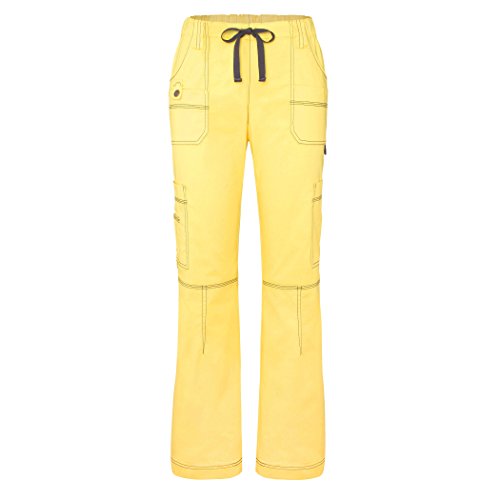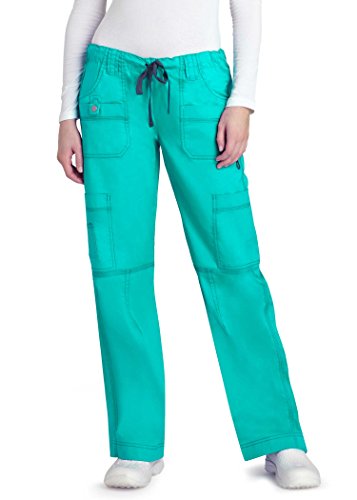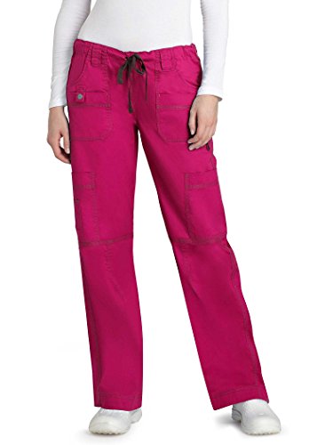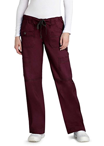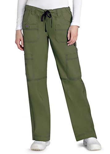 Junior fit, low rise, straight leg pants feature all around elastic waist with outer mesh drawstring, wide belt loops and a grand total of nine pockets to make this the ultimate pair of utility pants. Variety includes front patch and exterior pockets, cargo pockets and back pockets. Functional details like elastic bungee loop, tab with snap and triple pen holder on right go hand in hand with style elements like multi needle contrast top stitching. Low rise styling features straight cut leg with front motion knee darts. Inseam 31".Feature
