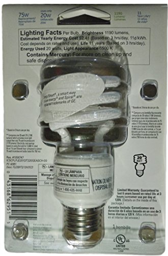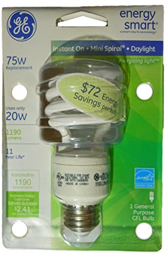 GE Energy Smart CFL Daylight 20-Watt (75-Watt Equivalent) 1190-Lumen T2 Medium Base Spiral Light Bulb - 6 Bulbs