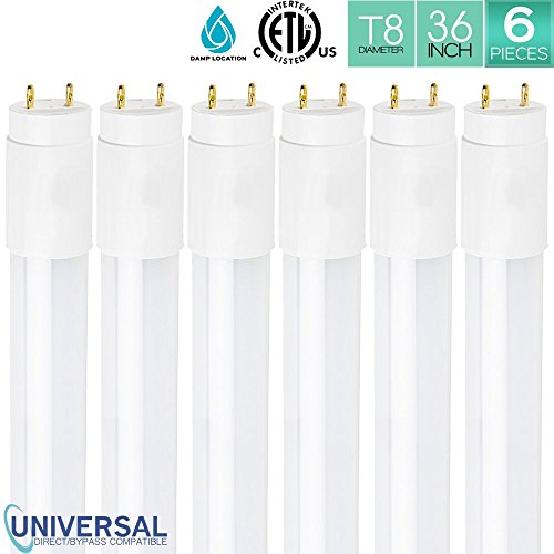 Luxrite T8 T10 T12 LED Light Tube, 3FT Tube, 16W (25W Fluorescent Equivalent), 5000K (Bright White), 1600 Lumens, Damp Rated, ETL Listed, Base G13, Universal Direct or Bypass, 50,000 Hr, 6-Pack