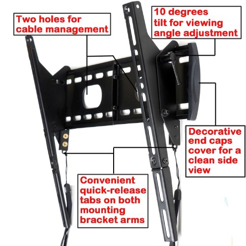 -. Binding : Electronics -. Brand : VideoSecu -. EAN : 0811535011177 -. Feature : Weight capacity 88 lbs; Fit VESA from 100X100 to 400X400mm (17" horizontal and 16" vertical) / Fits most TV's with 26" - 47" screens, some up to 50" flat panel TV / Tilt forward 10 degrees; Convenient quick-release tabs design on both mounting brackets / Mounts to any stud separation up to 440mm (17"); New end caps cover locking for a clean side view / Standard screws to TV or to the wall included; Assembly required;