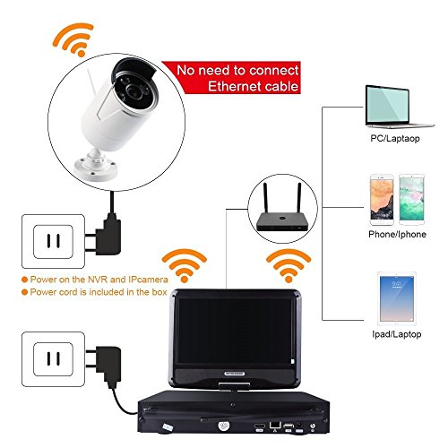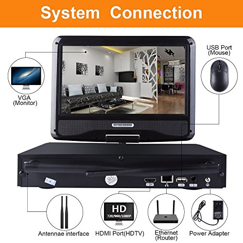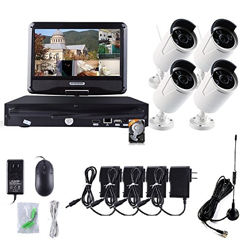 ZY Wifi Wireless Network/IP Security Camera System Video Surveillance CCTV NVR Kits with 4PCS Waterproof Bullet IP Camera with 10" inch LCD Screen Display Monitor (With 2TB HDD) (1080P)