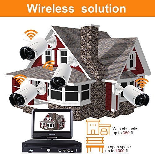4CH 1080P Wifi NVR Kit with 10Inch Screen.1MP 24 Hours Real-Time Video Recording and Playback, Get a sharp and crisp image day or night with the camera's automatic IR-cut filter. Up to 65ft night vision.IP66 Weatherproof Install the cameras outdoors or indoors to keep your home and business safe.
