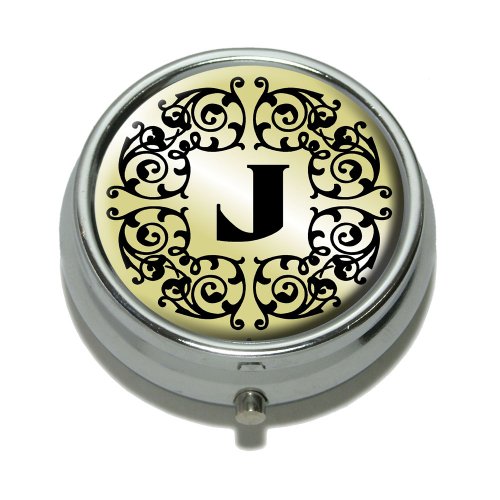 (Graphics and More)/Medical Supplies Equipment/Mobility Daily Living Aids/DIRECT FROM USA/Letter J Initial Black White Tan Pill Case Trinket Gift Box