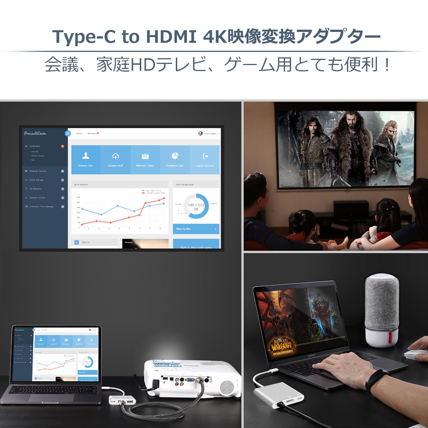 You can export high resolution screens by connecting conference, presentation, home TV, game display on the monitor, HDMI port.