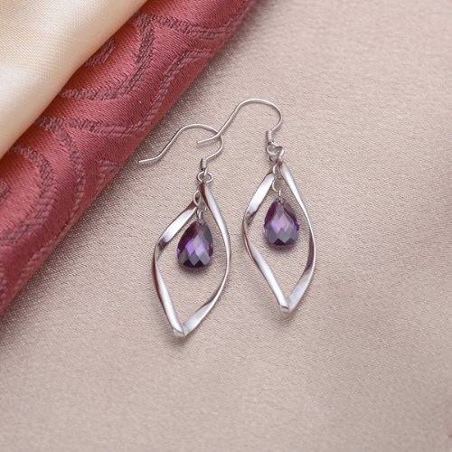 - Title : Everbling Amethyst Swarovski Elements Crystal Earrings 925 Sterling Silver