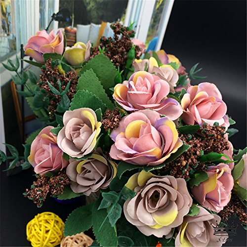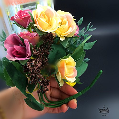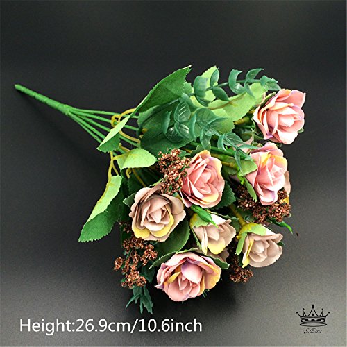 - *BEAUTIFUL & ELEGANT: S. Ena Artificial Silk Fake Milan Rose Flowers with 6 stems and 15 flower heads, flower diameter 1.18'' in, Each Bunch dimension approx.: 10.6" H x 6.7"W.