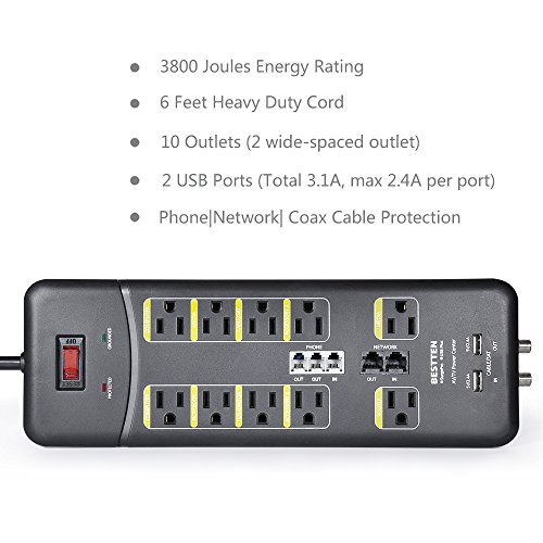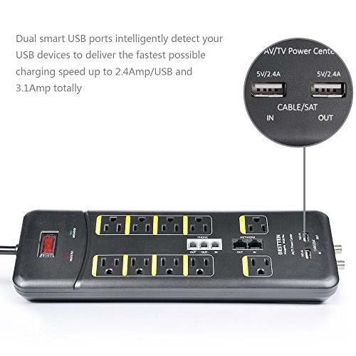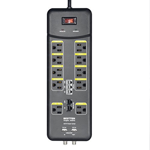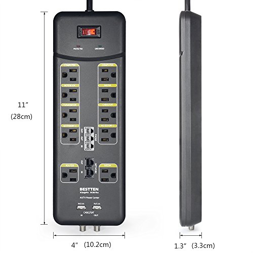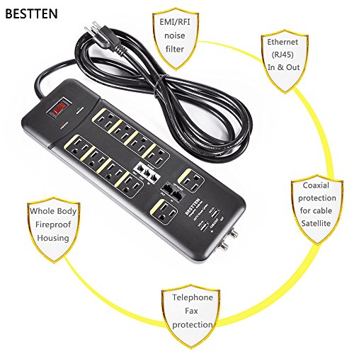 Guaranteed 3800 joule energy rating provides maximum power surge protection of all your sensitive electronic devices. Quality A/V experience - EMI/RFI noise filter protects from electromagnetic and radio frequency interference, specifically valuable for maintaining audio-video quality.