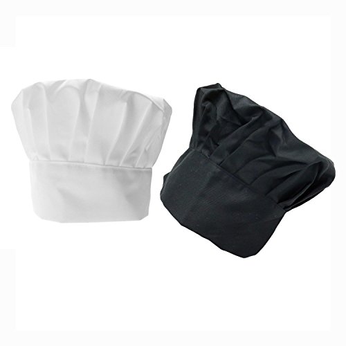 HUELE 2 PCS Chef Hat Adult Adjustable Elastic Baker Kitchen Cooking Chef Cap, White & Black