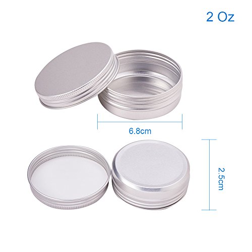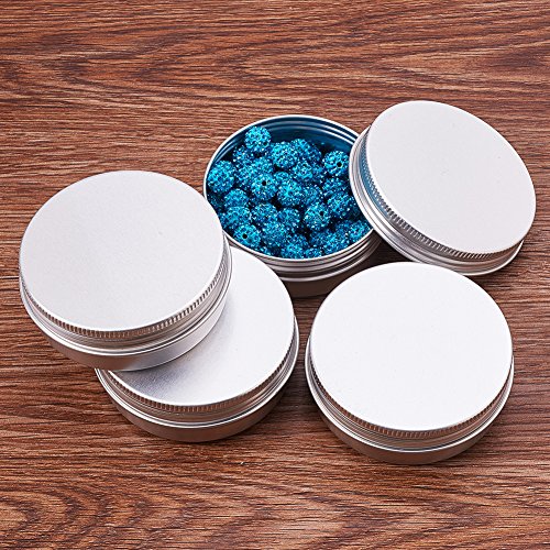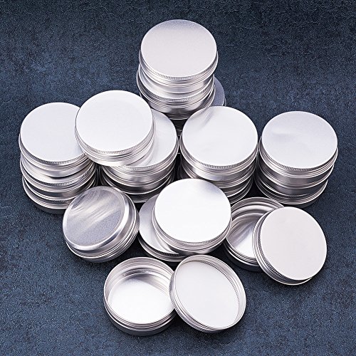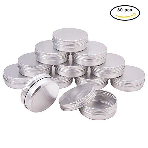 Pandahall Elite 2oz 30 Pack Silver Aluminum Round Tins Empty Slip Slide Round Containers Bottle with Screw Lid for Lip Balm,Crafts,Cosmetic,Candles,Travel Storage
