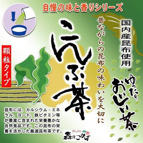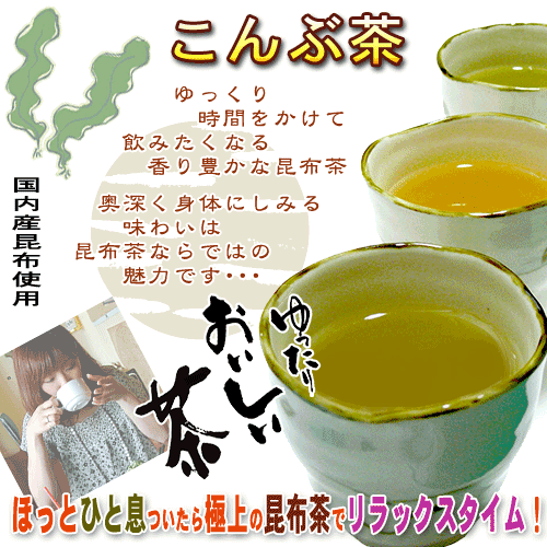 昆布には、カルシウム・ミネラル、ヨ ード、鉄ビタミン等が豊富に含まれた栄養豊かな自然食品です。この昆布の栄養を活かした厳選昆布茶です。 ゆっくり時間をかけて飲みたくなる香り豊かな昆布茶、奥深く身体にしみる味わいは昆布茶ならではの魅力です・・・ ほっとひと息ついたら極上の昆布茶でリラックスタイム! 工夫次第で簡単にダシがきいた美味しい味と風味をいろいろなお料理にお使い下さい 和風だから、あっさりシンプルに、そして極上の香りと風味で大満足!