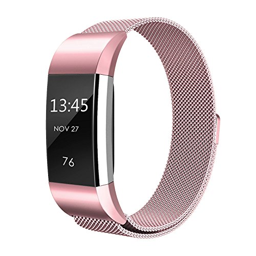 Tinghao Fitbit Charge 2 bands, Milanese Loop Stainless Steel Replacement Accessories Magnetic Metal Large Bands ( 6.1" - 9.9") for Fitbit Charge 2, Rose Pink