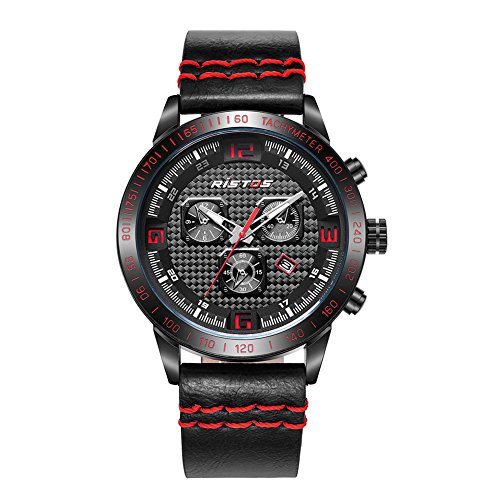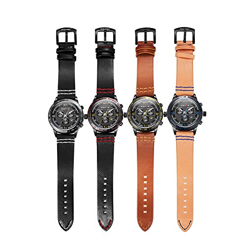 Aiks 브랜드 인기 내구 방수 손목시계 맨즈 스포츠 시계 레이디스 블랙 레더 가죽 밴드 라운드 페이스 [병행수입품]