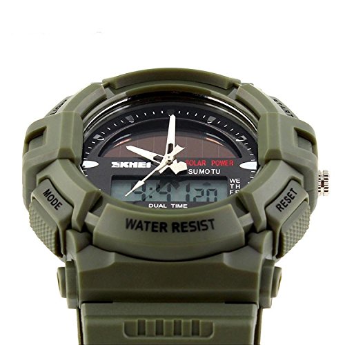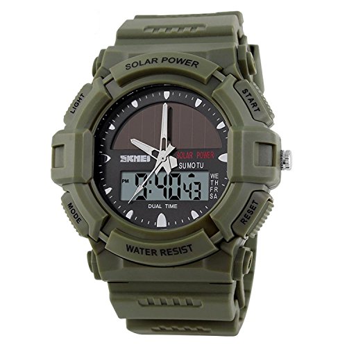 - Title : Gosasa Men's Solar Powered Dual Time Zones Sporty Digital Multifunctional Military Waterproof 50 Wrist Watch - Green
